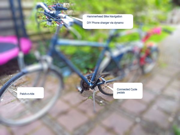 Thema: Gadgets. NOT! Patch n Ride is ge-preorderd, maar nog niet geleverd Hammerhead bike navigation: ook al in pre-order. Ontvangen. Exemplaar 1 bricked. Vervangend exemplaar kan niet worden opgeladen Connected Cycle: very super early bird order. Maar nog niet geleverd Selfmade phone charger: this was not easy. Eigenlijk niet gebruikt. Als we niet meer bang hoeven te zijn voor lekke banden en ook niet meer bang hoeven te zijn dat we verdwalen, is er dan nog wel ruimte voor avontuur? Nou, zet maar vast in op het aantal calorieen dat we verbruiken, aantal keren dat we gaan afwijken van de route en aantal keren dat we een patch moeten gebruiken. |