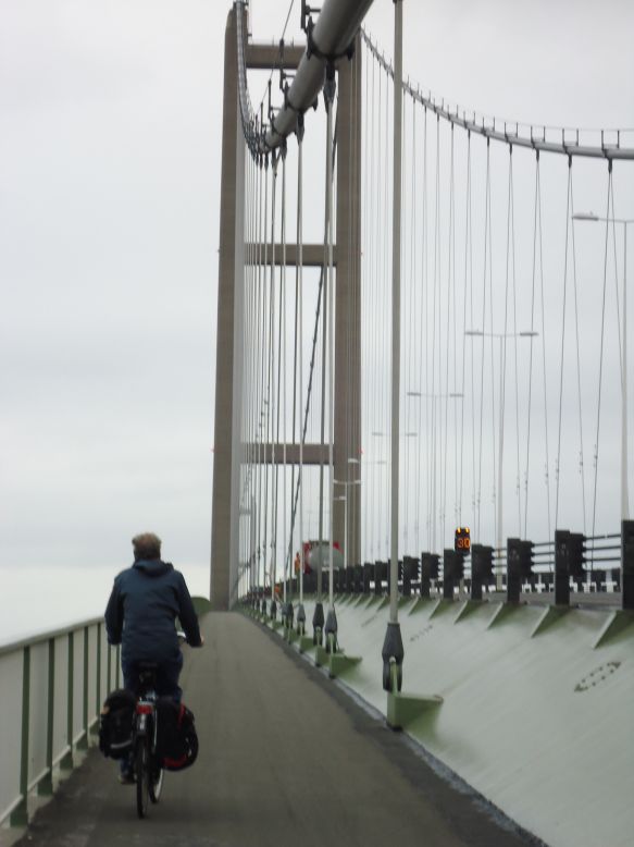 Lange fietstocht vandaag vandaag voor de boeg. Vanaf het hoogste punt van de Lincolnshire wolds naar zeeniveau. Dus per saldo dalend. We doen wel even de regenpakken aan, maar er is geen echte regen. De vraag van vandaag is 'halen we het?'. We halen het natuurlijk ruim. Zo slecht plant papa ook weer niet. En, niet onbelangrijk, we hebben vandaag geen pech. Willemijn vond vandaag de heuvels het meest vervelend. Het leukst vond ze dat het toch maar mooi allemaal heeft volgehouden. Floris vond vandaag de heuvels ook het minst leuk. Het leukst vond Floris de heuvels: er van af dan wel te verstaan. we verlaten Lincolnshire via de Humberbridge en komen aan in Hull. Daar gaan we weer aan boord.